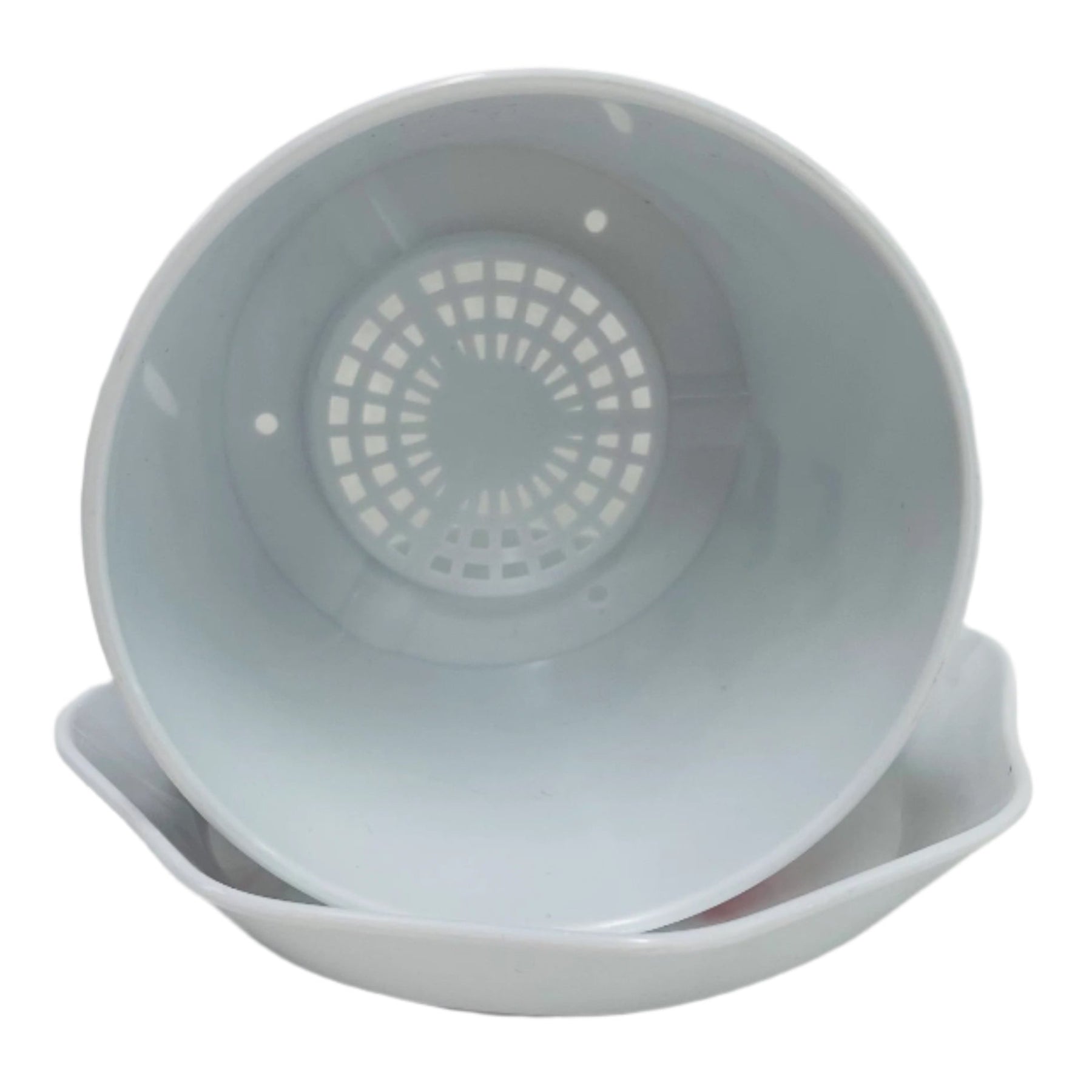 Flower pot. Great designs to liven up your window sill. Two piece polymer plastic set. The pot has drain holes in the bottom and a saucer to catch the excess water. The pot measures 3 5/8" wide x 3" high. The saucer measures 4 5/8" wide x 3/4" deep.