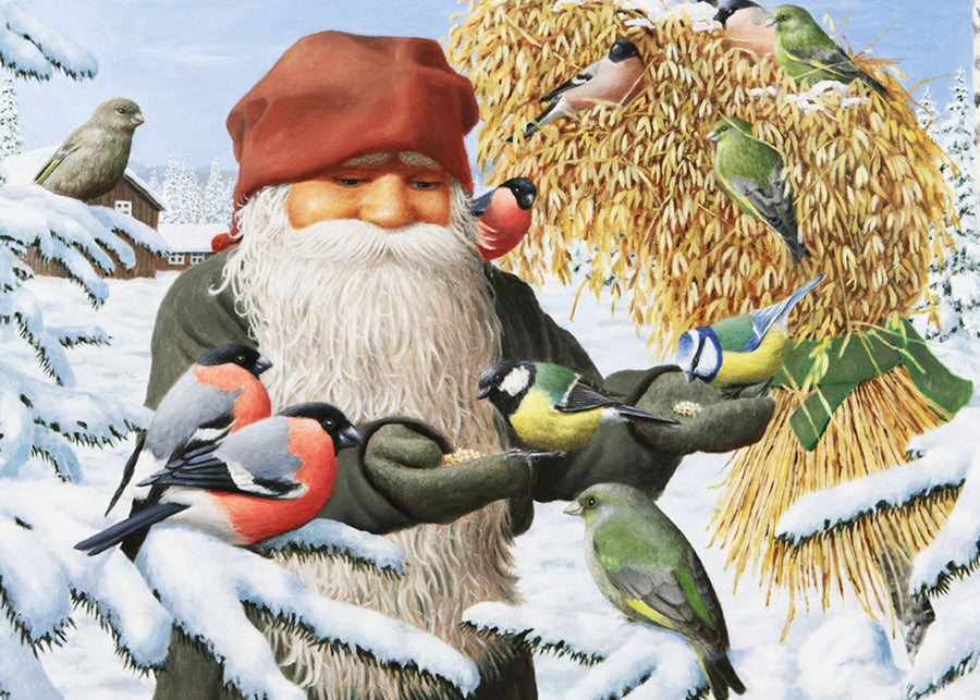 Rectangle Magnet, Jan Bergerlind Tomte Feeding Birds