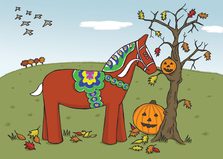 Rectangle Magnet, Karin Didring Dala horse Pumpkins