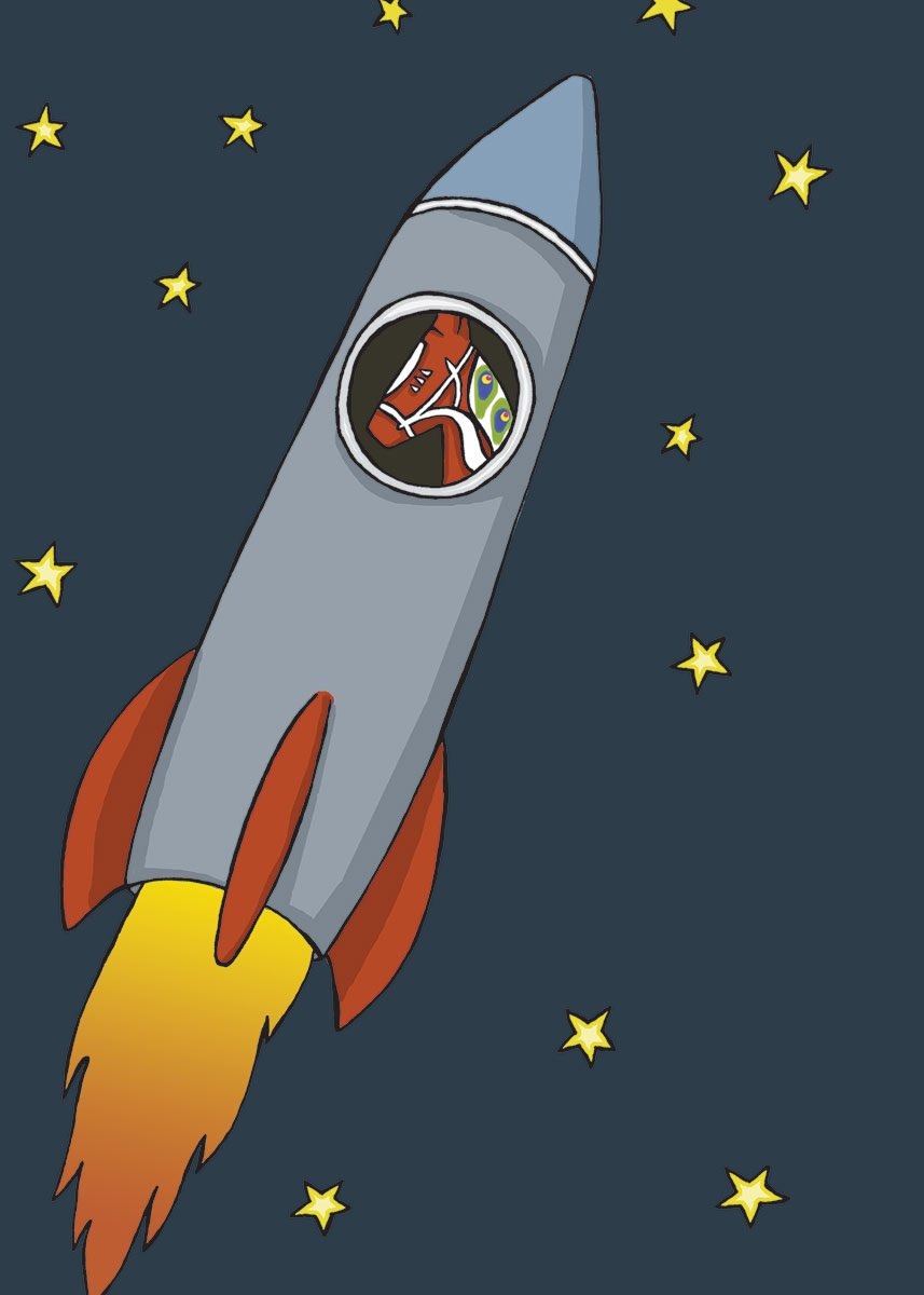 Rectangle Magnet, Karin Didring Dala horse in Rocket