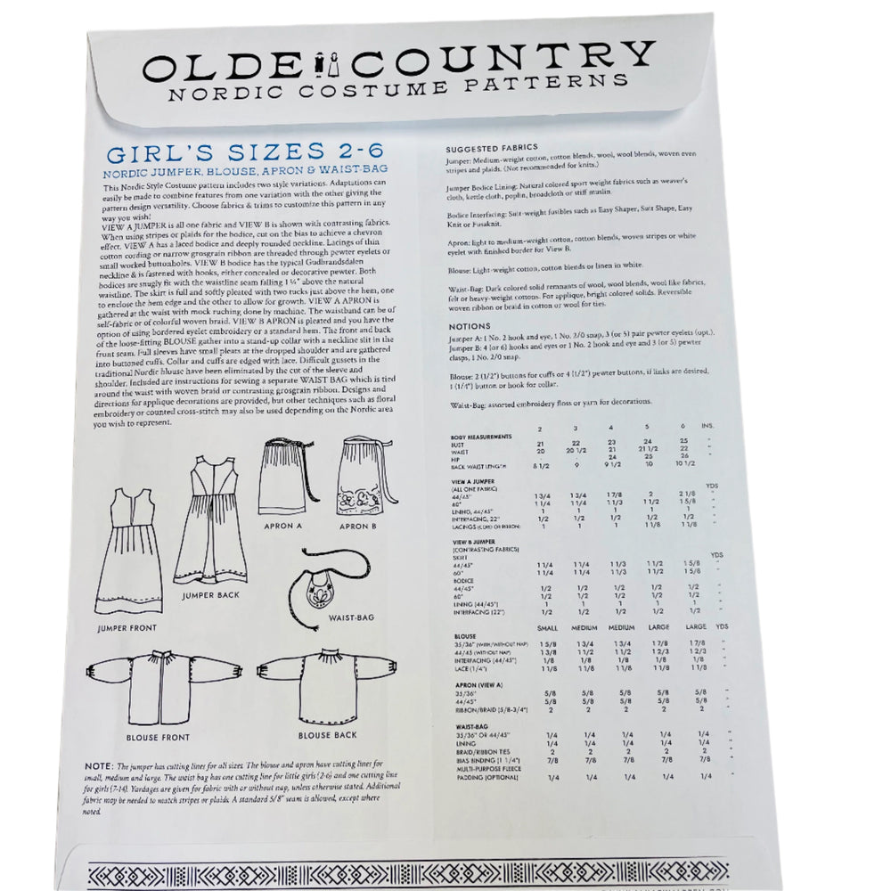 Costume Pattern - Girls sizes 2-6