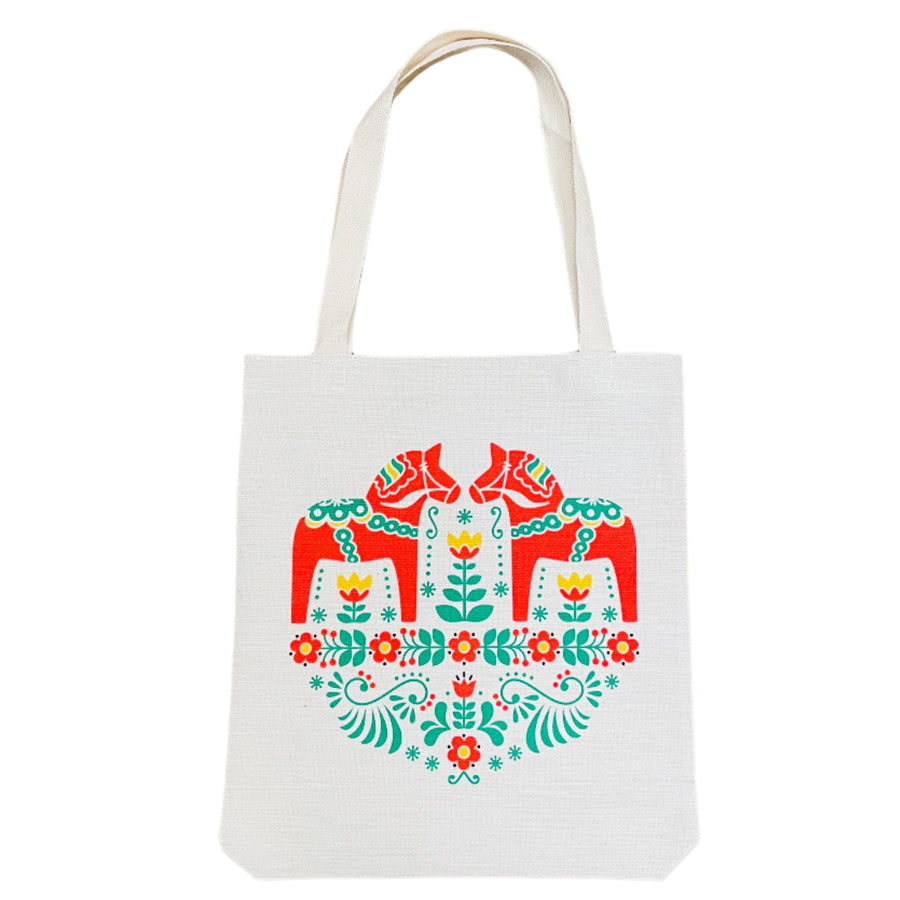 Linen Look Large Tote bag with Gusset Carl Larsson Apple Girl