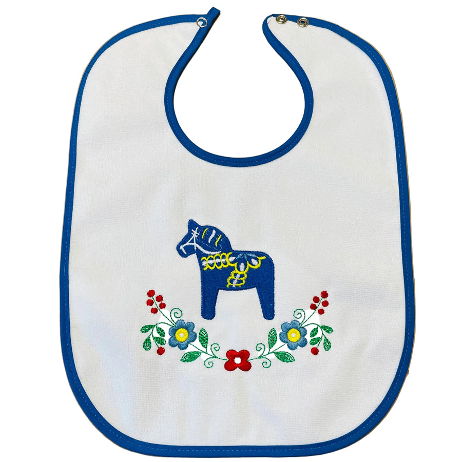 Baby Bib, Blue Dala Horse & Flowers