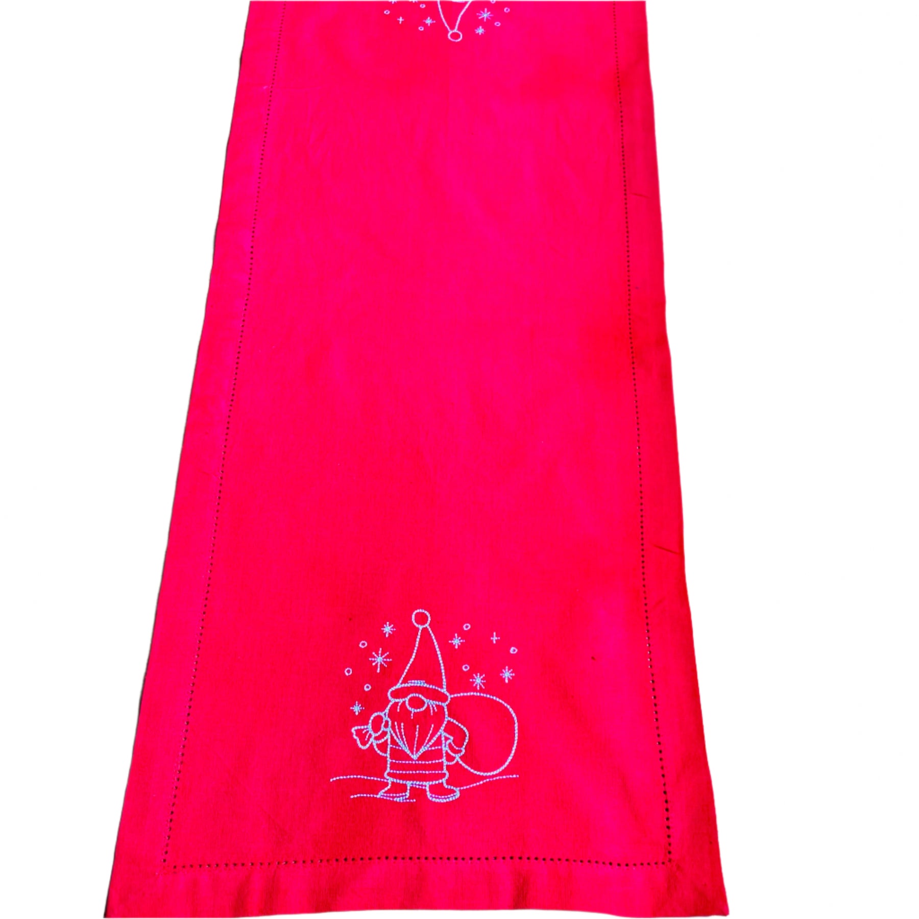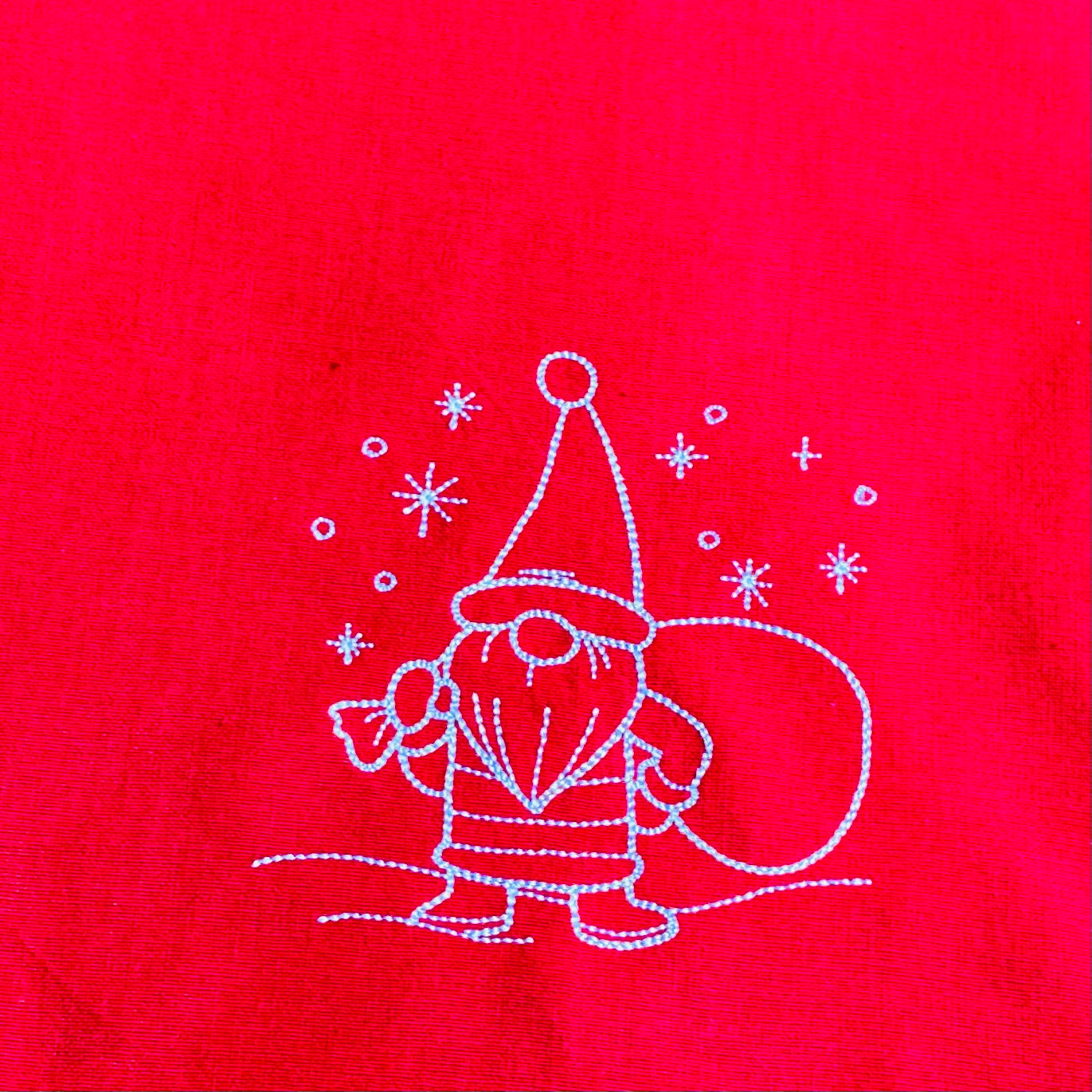 Gnome Santa Embroidered on Red 36" Runner