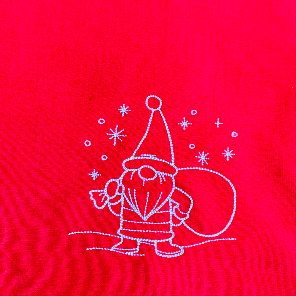 Gnome Santa Embroidered on Red 36" Runner