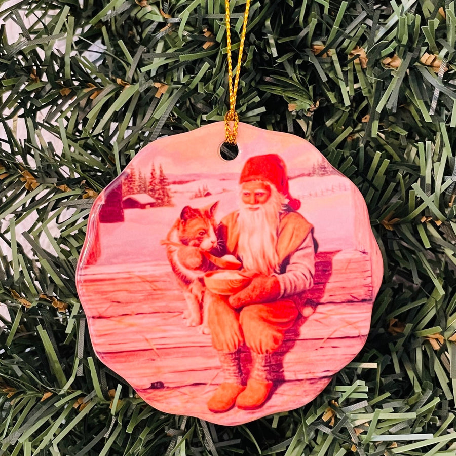 Ceramic Ornament, Jan Bergerlind Tomte with cat