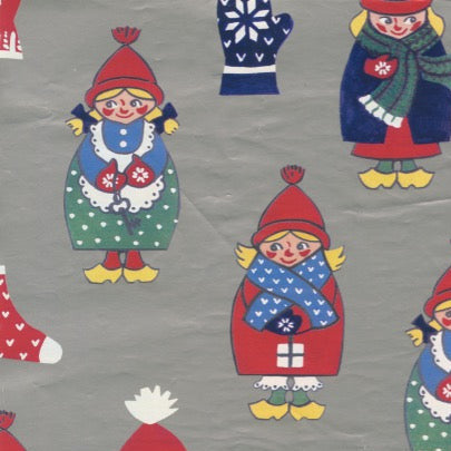 Silver Nordic Girls with Mittens & Hats Gift wrap or Craft paper