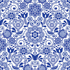 Blue Folk Art Gift wrap or craft paper