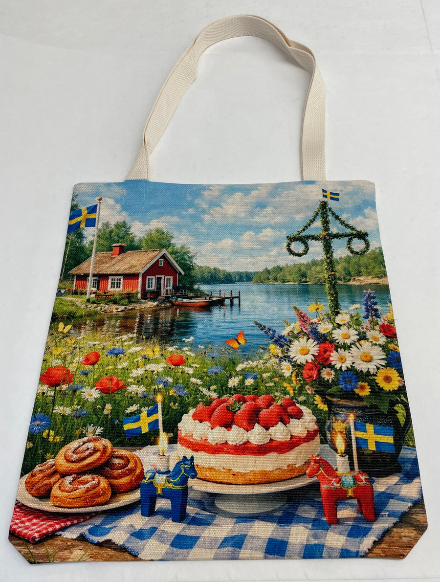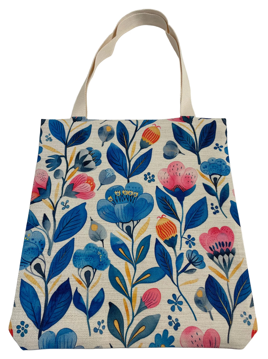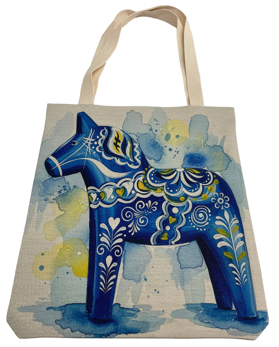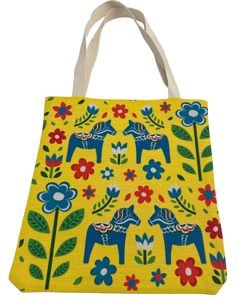 Linen Look Large Tote bag with Gusset - Dala Horses & Flowers