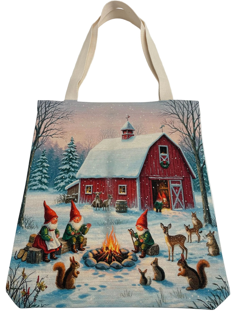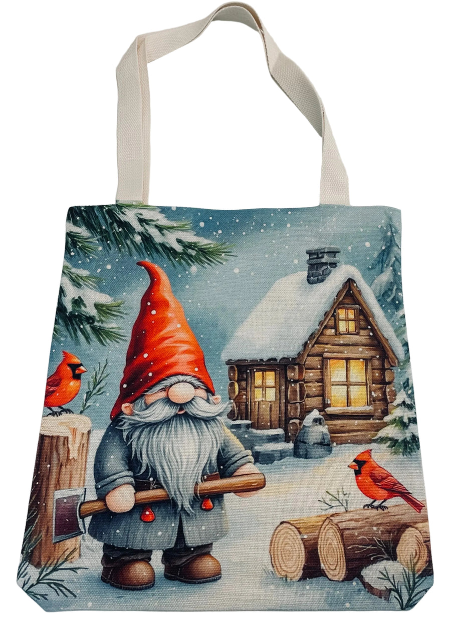 Linen look Tote bag Gnome chopping wood with Cardinals