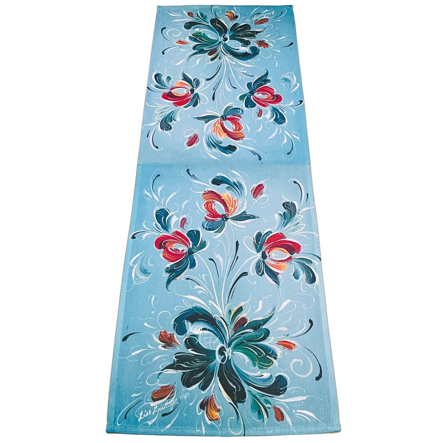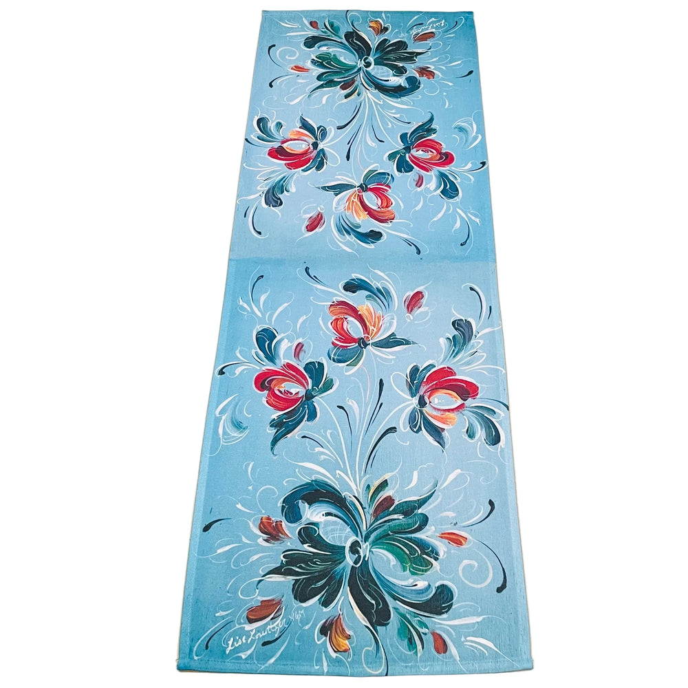 Lise Lorentzen Velkommen teal blue rosemaling Door Mat Rug