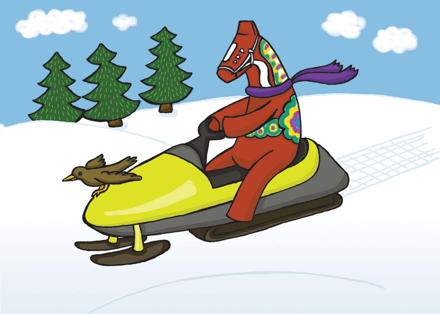 Rectangle Magnet, Karin Didring Dala horse Snowmobile