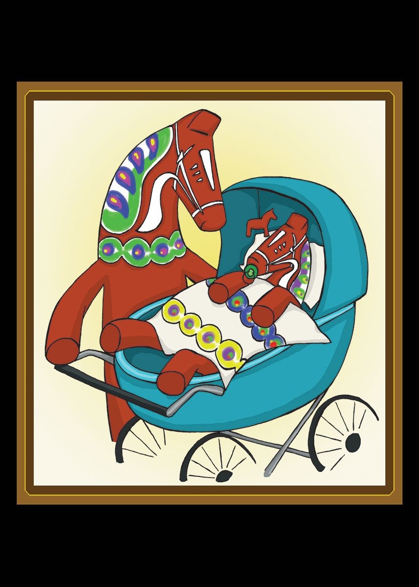 Rectangle Magnet, Karin Didring Dala horse baby carriage