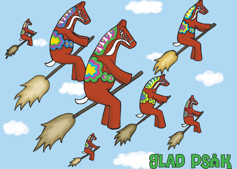 Rectangle Magnet, Karin Didring Easter Dala horses Riding Brooms